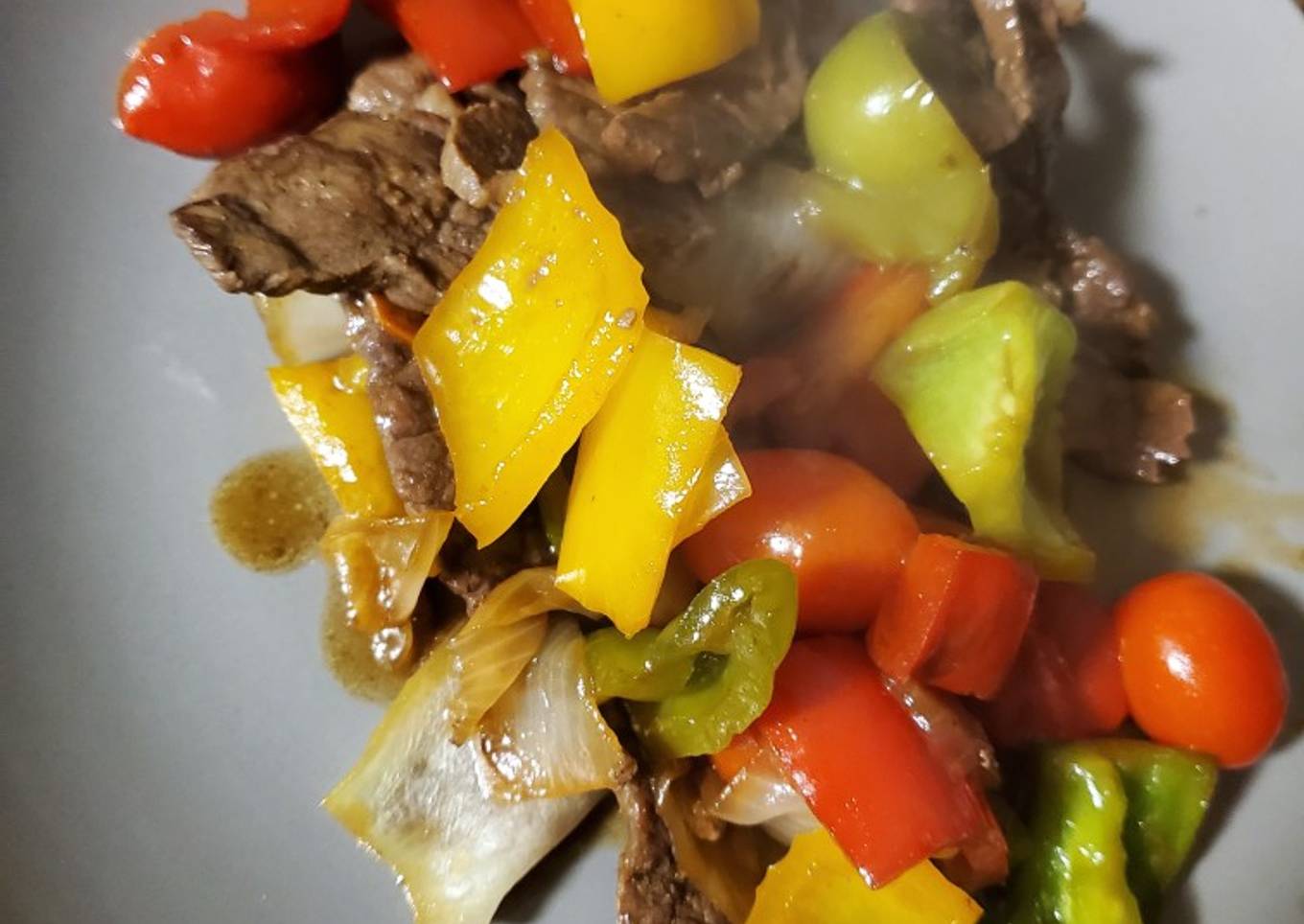 - Cuando este cocido las fajitas a nuestro gusto ponemos los vegetales, la salsa de soya e inglesa mezclamos y ta0amos por unos 5 minutos