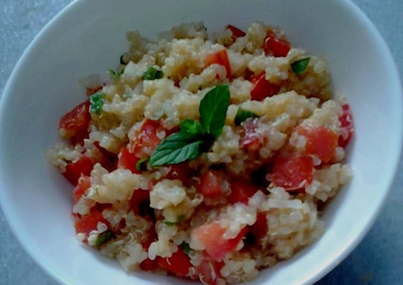 El tabule es una exquisita ensalada libanesa muy refrescante y sencilla. Esta versión está hecha con quinoa, así que es apta para celíacos.